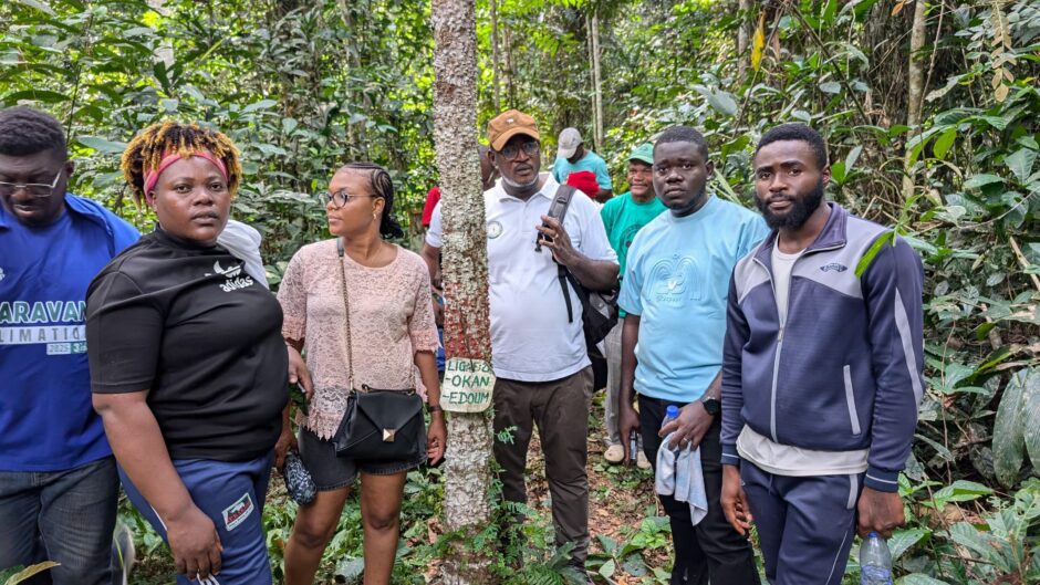 Les participants ont également visité le village d’Ebienne, où les communautés locales pratiquent le reboisement, l’agroforesterie et la culture de l’eboga, une plante sacrée utilisée dans les traditions locales. Cette immersion a illustré concrètement comment les initiatives communautaires peuvent soutenir à la fois la restauration écologique et la transmission des savoirs culturels.
